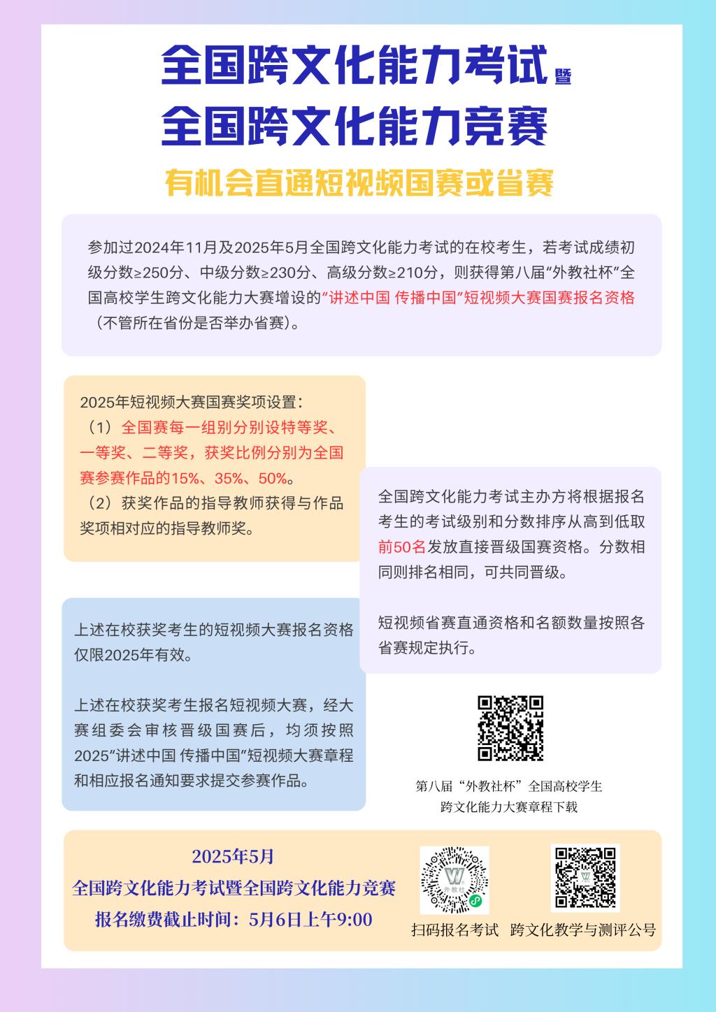2025年上半年全国跨文化能力考试将于517日(周六)上午举行。