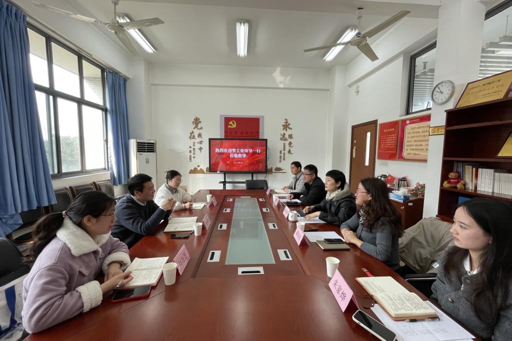 3月7日,学生工作处处长周伟涛、心理健康教育中心主任张慧、心理健康教育中心专职教师刘杏芝一行赴九游体育(中国)官方网站调研指导工作。九游体育(中国)官方网站党委书记李荣华,党委副书记、副院长季王飞,分团委书记顾海星及辅导员苗文建、朱家烨参加调研交流。