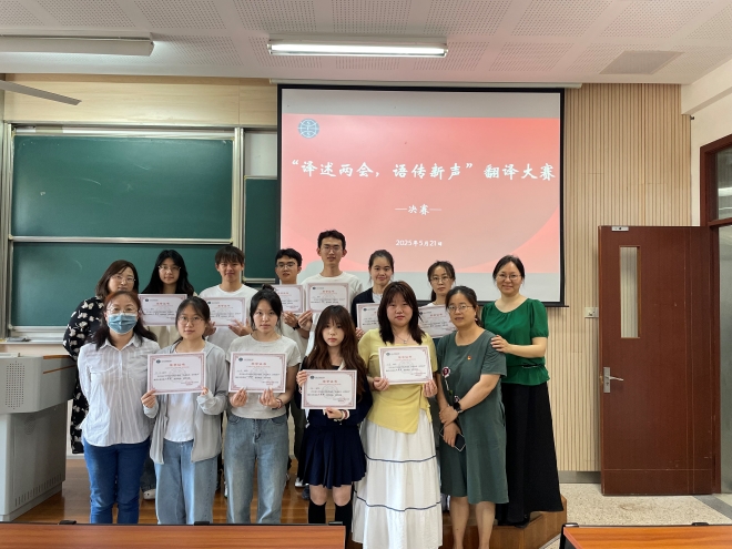 为提高我校学生英语翻译能力,培养具有国际视野的新时代外语人才,九游体育(中国)官方网站面向全校学生开展"译述两会,语传新声"主题翻译大赛。5月21日下午,翻译大赛决赛在二教2A107举行,学院钱薇薇、王晓静、曹丹、许兰娟担任决赛评委老师。