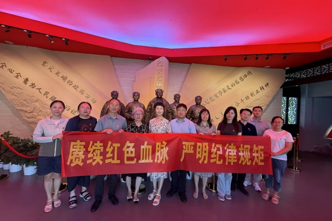 为深入学习贯彻党的二十大和二十届三中全会精神,扎实开展深入贯彻中央八项规定精神学习教育,2025年6月17日下午,江南大学九游体育(中国)官方网站党委中心组成员及行政党支部党员前往“延安精神无锡学习天地”,开展了以“赓续红色血脉·严明纪律规矩”为主题的学习实践活动。