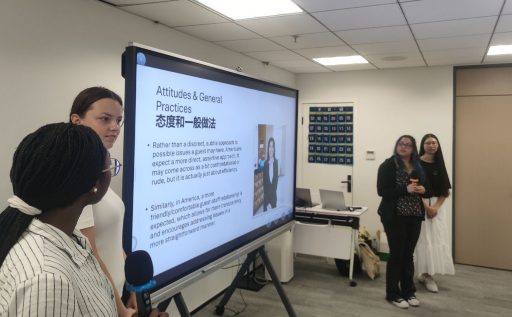 在江南大学参加夏校活动的美国加州戴维斯分校学生团队 活动聚焦美式商务沟通实践,通过主题分享、情景模拟、互动游戏等形式展开。结合电子商务案例,生动阐释了美式商务文化理念。在模拟洽谈环节,双方围绕各种真实场景展开对话练习,有效提升了跨文化交际能力。
