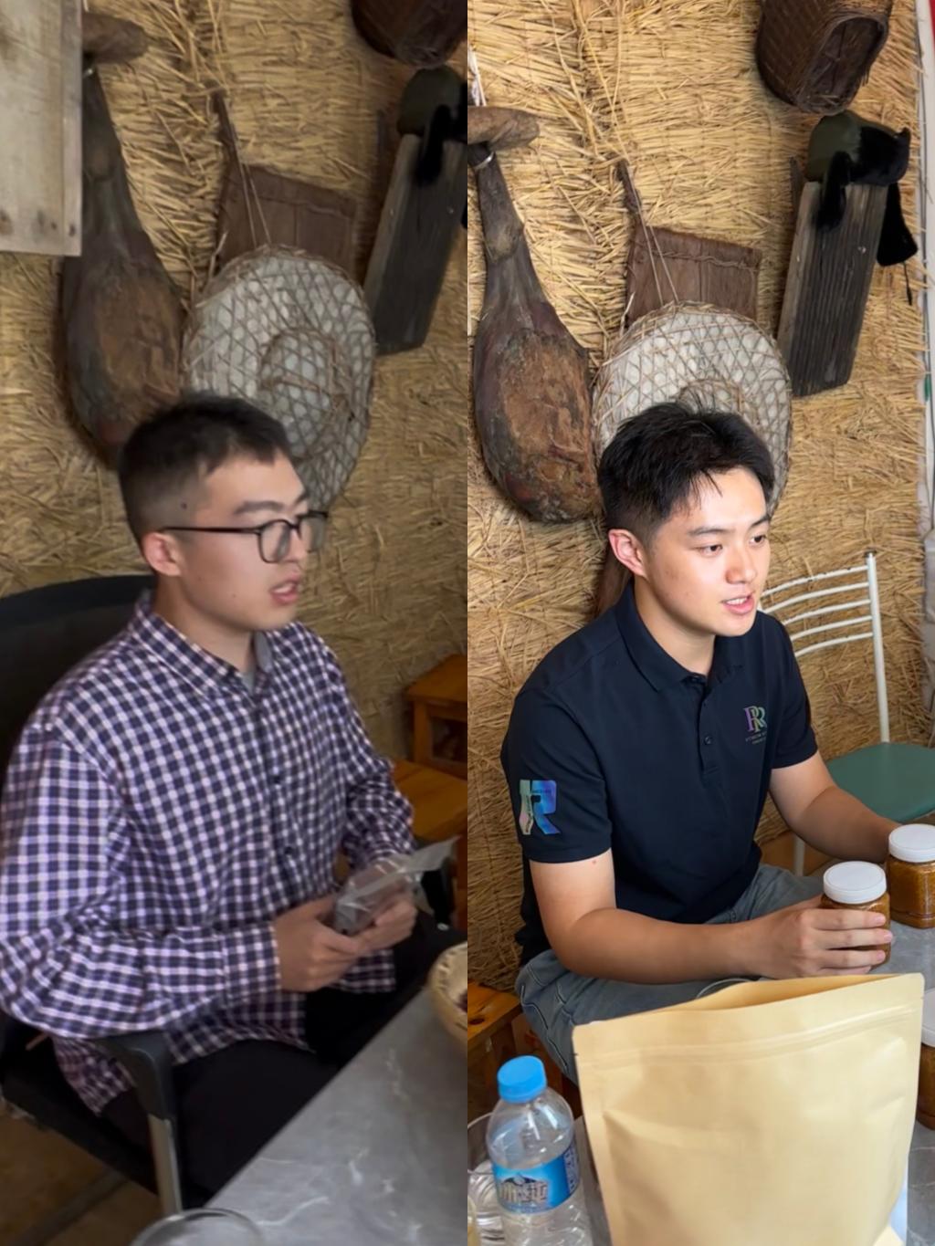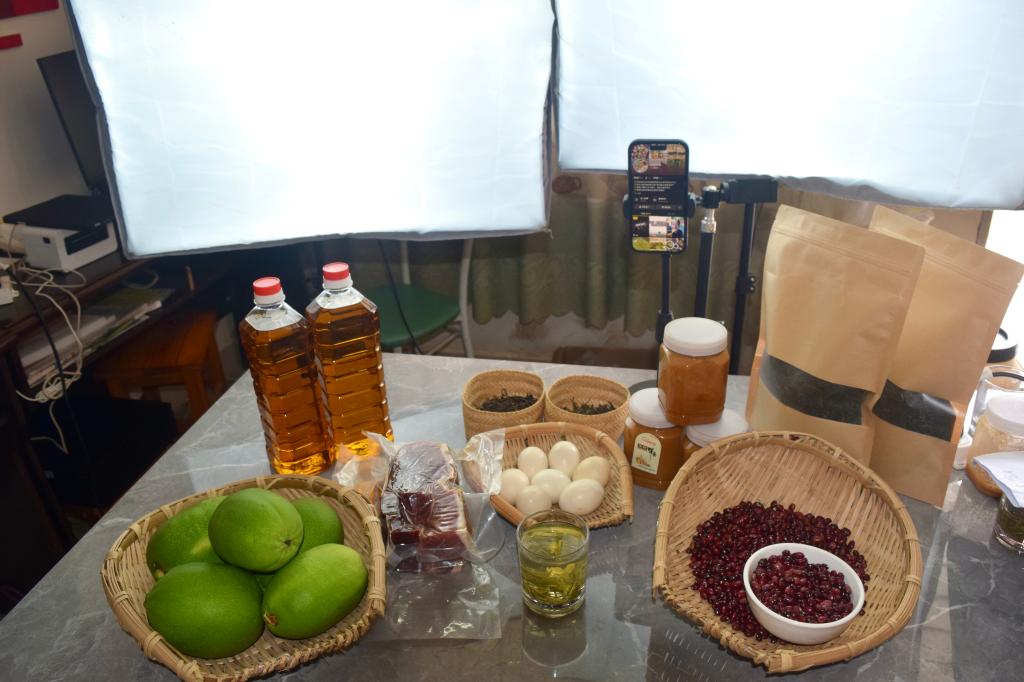 直播当日,村委会房间被布置成简洁直播间,竹篮装春茶、陶罐盛红豆、稻草筐码土鸡蛋等陈列,尽显乡土本色。依托专业优势,成员们打磨双语解说词,实现农产品与多元文化的联结:春茶介绍中,中文阐述“云雾滋养的兰香”,英语补充“适配下午茶的佳选”;铁核桃油介绍里,中文强调“物理压榨的健康”,日语衔接“拌凉菜增香绝佳”。两小时直播中,成员们轮流讲解,从春茶的冲泡手法到细红豆的煲汤食谱,从土鸡蛋的营养优势到火腿的切片技巧,每一款产品的介绍都带着调研时的细节与温度。后台数据显示,此次直播总销售额达3644.3元,千次曝光用户支付金额1201.94元,商品点击次数750次,成交订单数达60单,较上月环比增长999%以上;客单价为84.75元,环比增长184%;商品曝光次数3032次,环比增长894%。直播登上抖音同期生鲜榜第16名,订单持续滚动,“春茶补货”“再上蜂蜜”等留言不断涌现,村民们看着跳动的订单数,真切感受到“深山好物被看见”的喜悦。