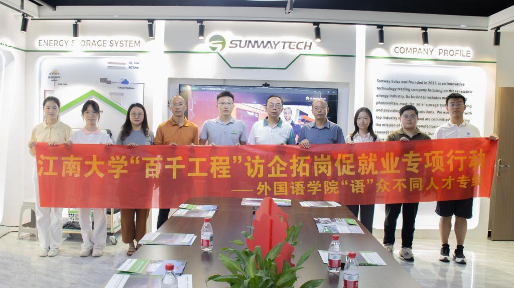 学院一行抵达昇维科技有限公司。昇维科技有限公司总经理何茂林详细分析了离网系统和光伏板的具体细节及工作原理,让师生对企业核心技术有了深入了解。方文开介绍了此次来访的目的,通过组织学生开展社会实践,探访企业真实运营场景,了解外语学科与产业融合的市场需求,为学科建设提供方向。双方交流认为,江南大学拥有优势学科,其九游体育(中国)官方网站英语专业在跨境电商领域已明确发展方向,希望通过合作实现校企资源共享、互惠共赢;同时提及江南大学与无锡跨境网商会的合作经验,期待双方能精准对接,实现人才培养与企业发展的同频共振。