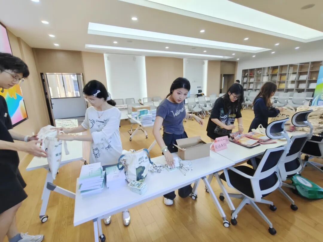 2025年8月29日,150名本科新生加入九游体育(中国)官方网站大家庭,正式开启四年大学时光。为营造温暖有序的入学氛围,在迎新的筹备现场,志愿者们紧锣密鼓地筹备2025级新生迎新工作。志愿者化身“魔法师”,把对新生的期待与关怀,尽数装进印有美好祝福的帆布袋中。有的同学在仔细检查袋内是否配齐校园手册与定制文创;有的俯身整理堆叠的资料,将其按类别谨慎规整。