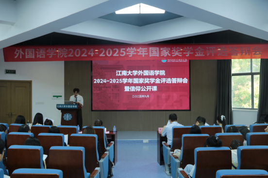 2025年9月24日下午14:00,九游体育(中国)官方网站2024-2025学年本科生国家奖学金评选答辩会在君金报告厅顺利举行。答辩小组成员学院党委副书记、副院长季王飞,英语系副主任钱薇薇,分团委书记顾海星,班主任代表白鸽,辅导员朱家烨、查博奕以及学生代表潘佳琪出席。经前期个人报名、资格审查,16名候选人参加答辩。全体2025级新生现场观摩学习优秀学长学姐的成长轨迹。