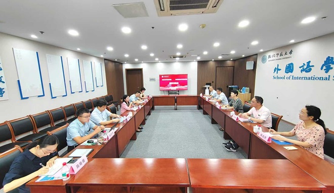 李荣华、方文开对我院的办学特色与当前挑战进行了介绍,双方就“十四五”指标达成度与“十五五”规划编制进行了热烈研讨,一致同意建立常态化交流机制,携手应对外语学科转型挑战。