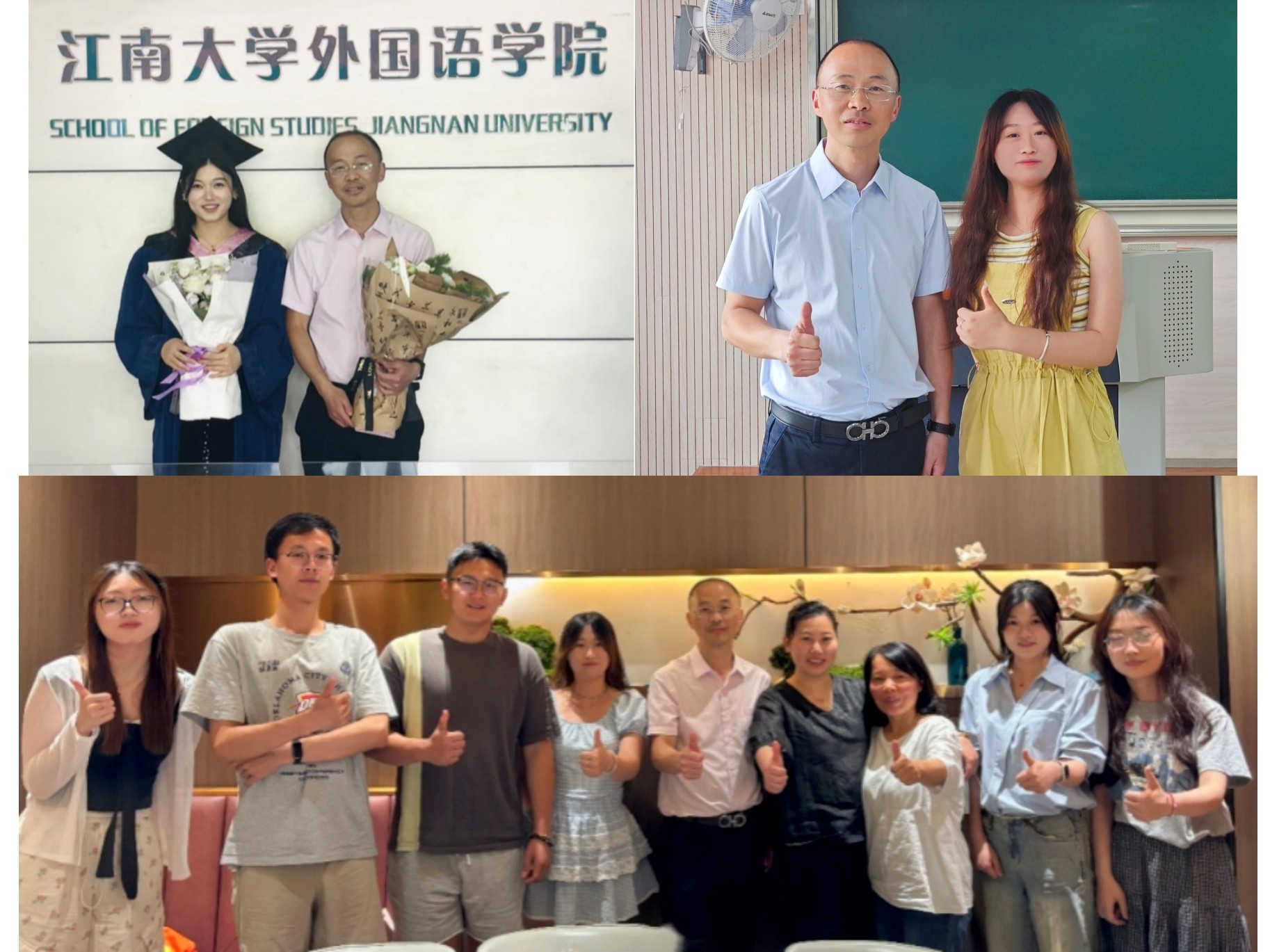 “学问的温度在于心的刻度”。杨老师不仅是课堂上的语言学引路人,更是学生心中的“灵魂温度计”“精神供暖者”。每逢中秋,他总会为学生购买各种月饼,与异地留校的同学分享中秋的喜悦,带上家人与学生吃上一顿热乎的团圆饭,为学生准备月饼、薯片等中秋零食,他和师娘用细碎的温暖编织成网,接住每一颗在异乡漂泊的年轻心灵。杨老师的关怀从不喧哗,却像江南的雨,无声浸润着我们为人治学的底色。