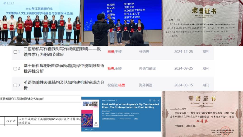 图2 杨老师指导的研究生们在学术论坛、科研项目、论文发表中取得优异成绩
